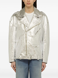 leather biker jacket Highlights - Silver-tone - Front zip fastening - Epaulettes - Internal zip-fastening pockets - Front flap pocket Made in Italy Composition Outer: Sheepskin 100% Lining: Viscose 100%