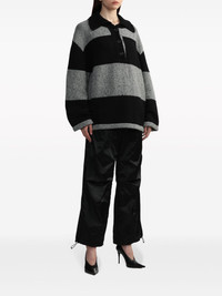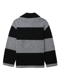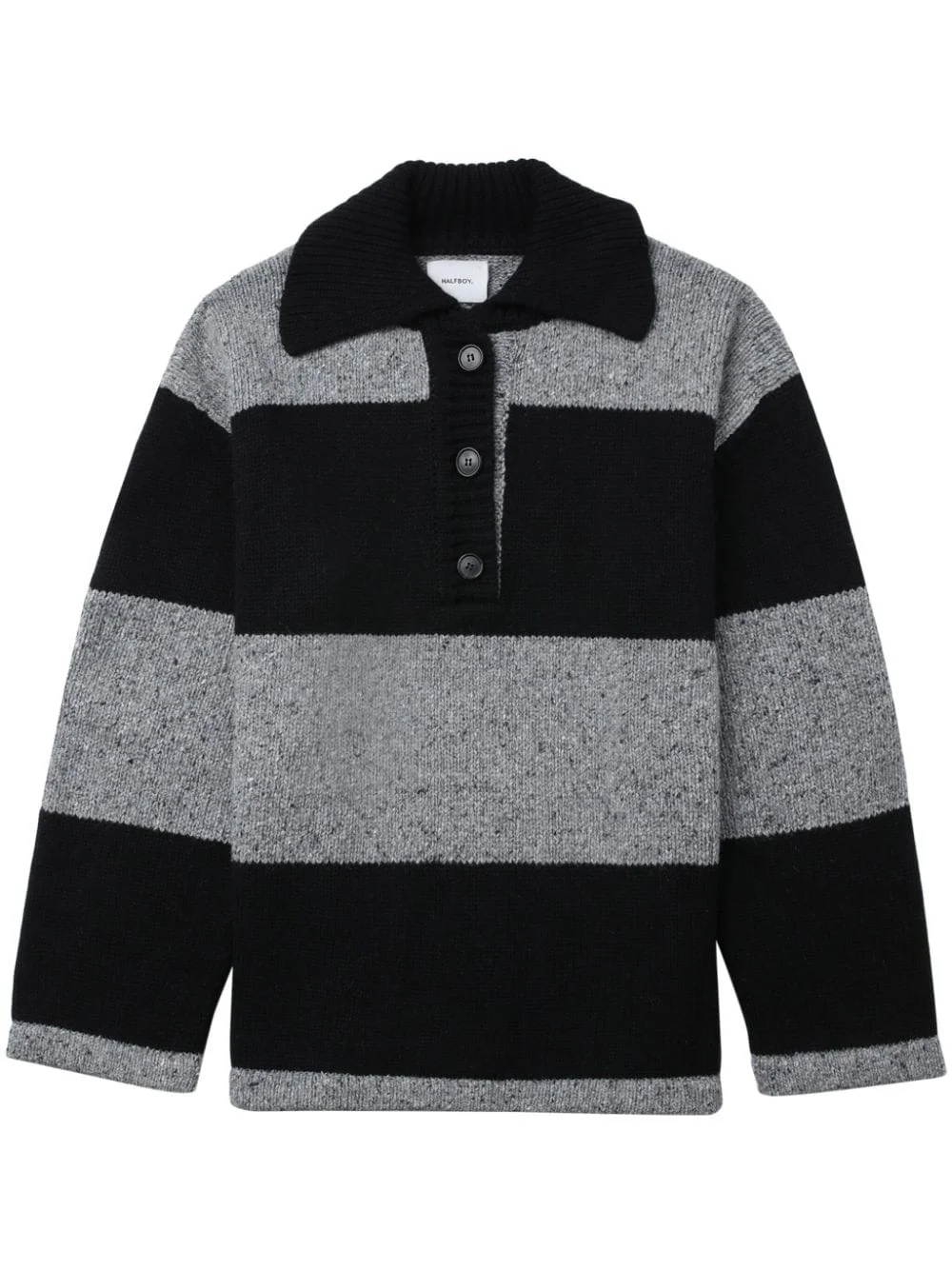 spread-collar striped jumper Highlights - Black/dark grey - Wool-cotton blend - Knitted construction - Horizontal stripe pattern - Spread collar - Front button placket - Long sleeves - Straight hem Made in Italy Composition Wool 77%, Cotton 23%