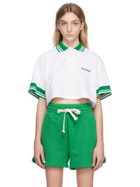 Cotton pique polo. · Rib knit spread collar and cuffs · Four-button placket · Logo embroidered at chest Supplier color: White 100% cotton. Made in Italy 231242F108001
