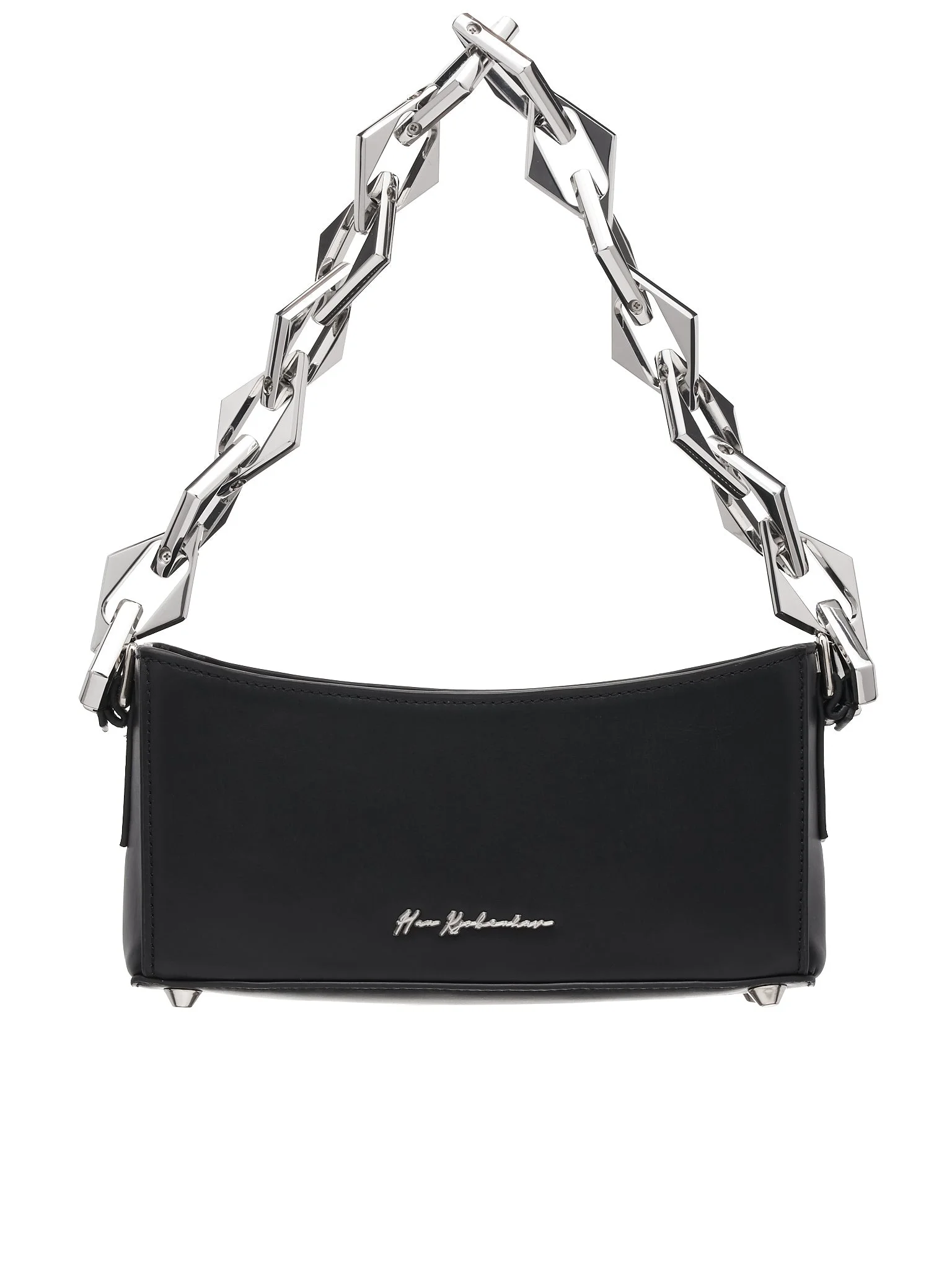 HAN KJOBENHAVN bag in silver black, box design, leather construction, metal diamond chain strap & logo, detachable leather strap, zip closure, fully lined. Made in Belgium Standard Sizing Body - 100% Cow Leather, Metal Lining - 100% Cotton