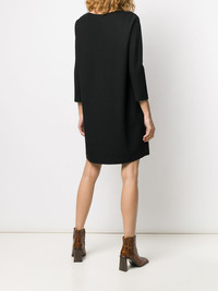 boat neck shift dress Black virgin wool boat neck shift dress from Harris Wharf London featuring long sleeves, a relaxed shape and a short length. POSITIVELY CONSCIOUS: Harris Wharf London scores 3 out 5 by independent ethical brand rating agency Good On You. Its products are made to order and manufactures locally to reduce its carbon footprint. It does not use fur, leather, down, exotic animal skin or angora. Made in Italy Composition Virgin Wool 100% SIZE & FIT Model measurements Height 5 ft 11 in(1.8 m) Bust/Chest 31.1 in(79 cm) Hips 34.25 in(87 cm) Waist 22.83 in(58 cm) FittingInformation This piece fits true to size. We recommend you get your regular size Cut for a slim fit Made with a mid-weight fabric