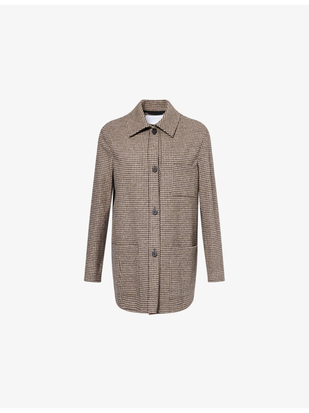 PRODUCT DETAILS - Harris Wharf London wool-blend jacket - 47% virgin wool, 42% cotton, 10% polyamide, 1% elastane - Button fastening - Regular fit, collar, long sleeves, pockets at front, check pattern, brushed texture - Dry clean - Made in Italy - True to size - Size UK 8: length 30in / 76cm - Model is 5ft 10in/1.78m and wears a size UK 8 - Lightweight, non-stretch Ref: R04539440