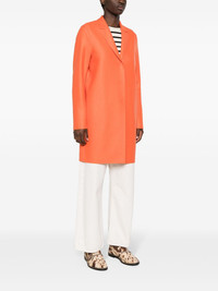 Cocoon wool coat Highlights - Geranium orange - Virgin wool - Felted finish - Notched lapels - Long sleeves - Two side inset pockets - Unlined - Straight hem - Front press-stud fastening Made in Italy Composition Virgin Wool 100% SIZE & FIT Model measurements Height 5 ft 10 in(1.77 m) Bust/Chest 32.28 in(82 cm) Hips 35.03 in(89 cm) Waist 25.19 in(64 cm) FittingInformation Designed to be unstructured, offering a loose fit throughout Made from a midweight non-stretch fabric This piece fits true to size – take your usual size