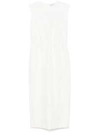 crinkled midi dress Highlights - White - Single rear button fastening - Keyhole detail to the rear - Central rear vent - Gathered detailing Made in Italy Composition Cotton 80%, Polyamide 18%, Elastane 2%