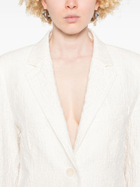 crinkled shoulder-pads blazer Highlights - White - Front button fastening - Chest welt pocket - Two front patch pockets - Unlined Made in Italy Composition Cotton 80%, Polyamide 18%, Elastane 2% SIZE & FIT Model measurements Height 5 ft 9 in(1.75 m) Bust/Chest 34.64 in(88 cm) Hips 36.61 in(93 cm) Waist 26.37 in(67 cm) FittingInformation Designed for a relaxed fit, this piece allows for comfort and movement when worn The internal shoulder pads offer a structured shape Made from a lightweight stretch fabric, this piece offers elasticity and flexibility when worn