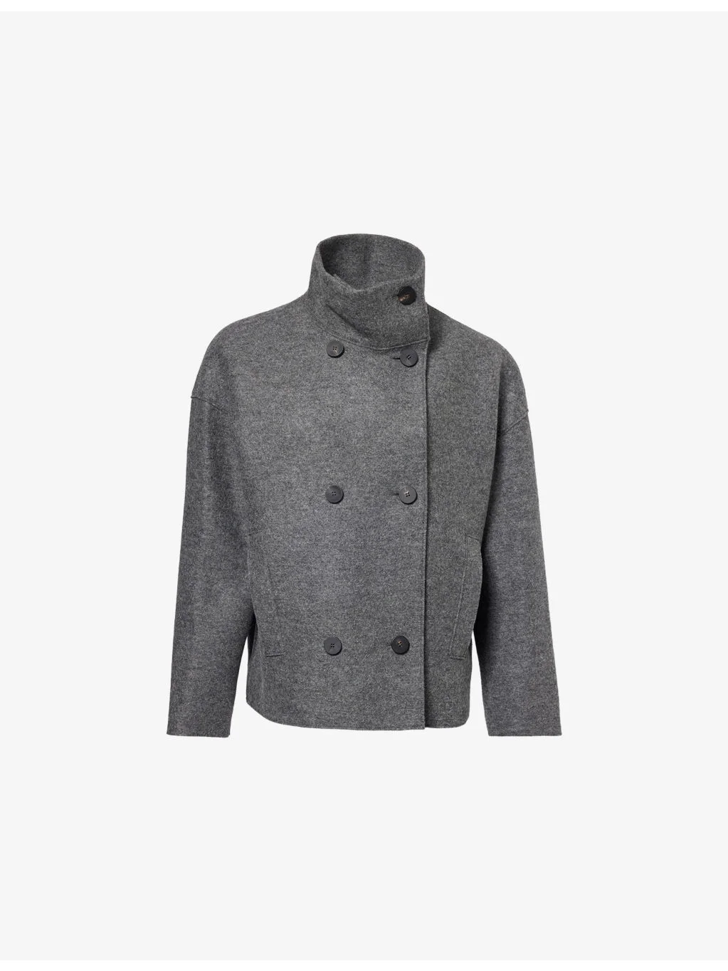 PRODUCT DETAILS - Harris Wharf London wool jacket - 100% virgin wool - Button fastening - Regular fit, funnel neck, long sleeves, slip pockets at front, pressed wool texture - Dry clean only - Made in Italy - True to size - Size UK 8: length 24in / 61cm - Model is 5ft 10in/1.78m and wears a size UK 8 - Midweight, non-stretch Ref: R04539437