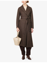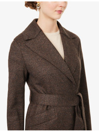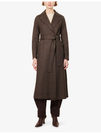 PRODUCT DETAILS - Harris Wharf London wool-blend coat - 66% wool, 17% silk, 13% cotton, 4% viscose - Self-tie fastening - Regular fit, peak lapels, long sleeves, matching belt, welt pockets at front, back slit - Dry clean - Made in Italy - True to size - Size UK 8: length 49in / 125cm - Model is 5ft 10in/1.78m and wears a size UK 8 - Midweight, non-stretch Ref: R04577079