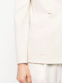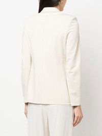 double-breasted blazer Highlights - Ivory white - Double-breasted button fastening - Notched lapels - Two front patch pockets - Long sleeves - Straight hem Made in Italy Composition Viscose 100% SIZE & FIT Model measurements Height 5 ft 11 in(1.8 m) Bust/Chest 33.07 in(84 cm) Hips 37.4 in(95 cm) Waist 25.19 in(64 cm) FittingInformation This piece fits true to size. We recommend you get your regular size Cut for a slim fit Made with a mid-weight stretch fabric Washing instructions Dry Clean Only