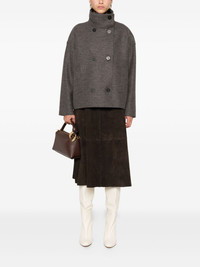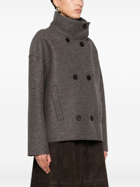 double-breasted funnel-collar jacket Highlights - Brown - Double-breasted - Funnel collar - Welt pockets - Long sleeves - Straight hem Imported Composition Virgin Wool 100% SIZE & FIT Model measurements Height 5 ft 9 in(1.76 m) Bust/Chest 31.49 in(80 cm) Hips 35.03 in(89 cm) Waist 24.8 in(63 cm) Washing instructions Read Manufacturer Guidelines