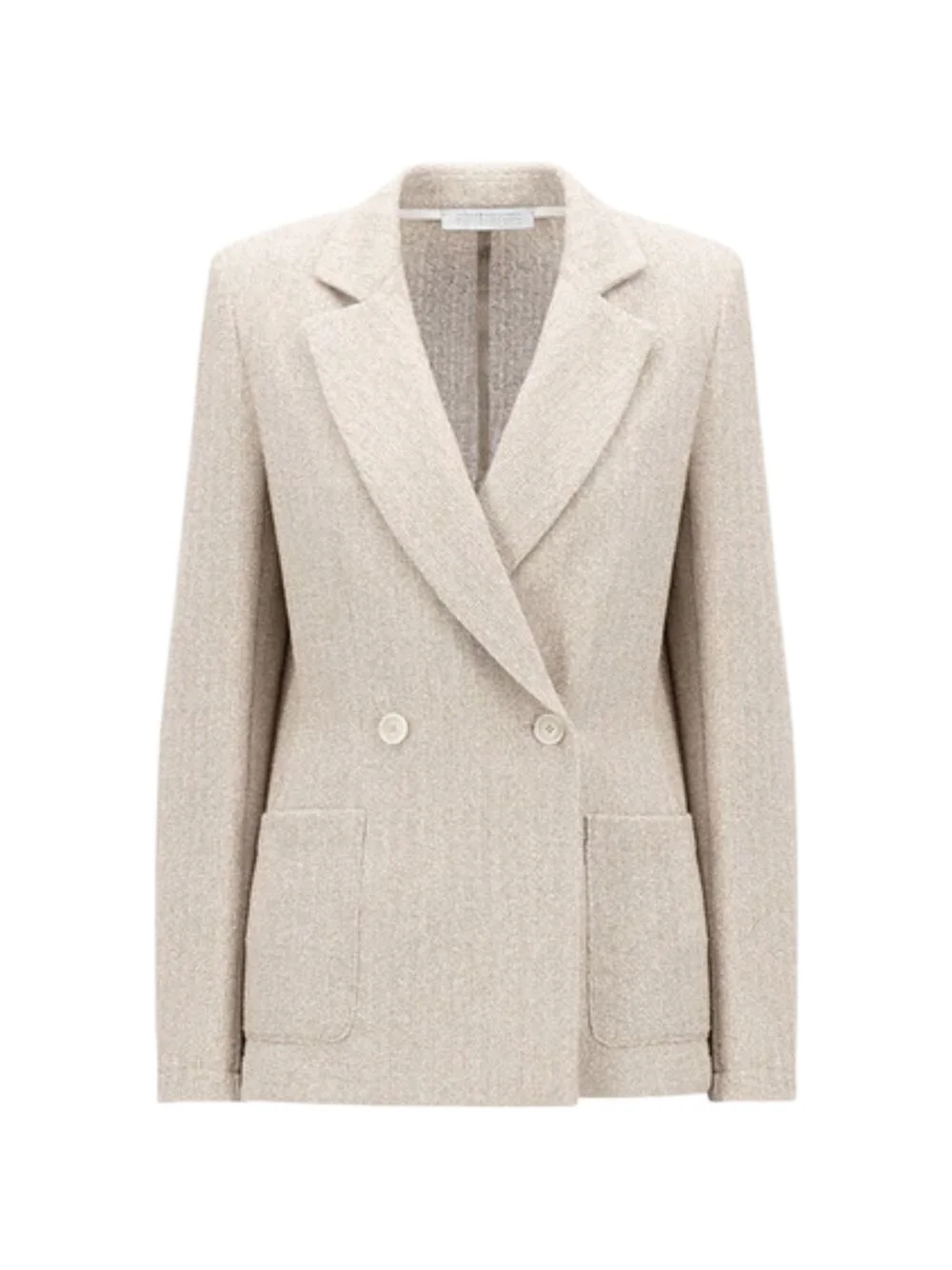 double-breasted pocket blazer Highlights - Beige - Double-breasted - Notched lapels - Front patch pockets - Long sleeves - Button fastening Imported Composition Recycled Cotton 60%, Polyester 40% Washing instructions Dry Clean Only