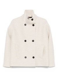 double-breasted wool jacket Highlights - Light beige - Double-breasted fastening - High neck - Long sleeves - Welt pockets Made in Italy Composition Virgin Wool 100% SIZE & FIT Model measurements Height 5 ft 9 in(1.75 m) Bust/Chest 34.64 in(88 cm) Hips 36.61 in(93 cm) Waist 26.37 in(67 cm) Washing instructions Dry Clean Only
