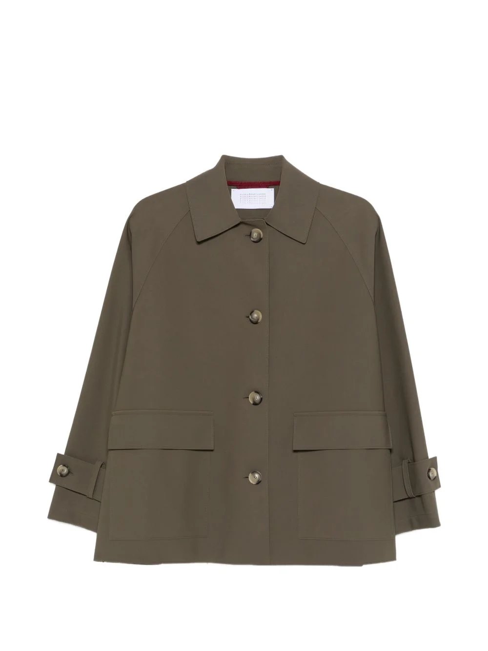 raglan-sleeve scuba jacket Highlights - Olive green - Spread collar - Front button fastening - Flap pockets - Long raglan sleeves - Belted cuffs Made in Italy Composition Polyamide 75%, Elastane 25% Washing instructions Dry Clean Only