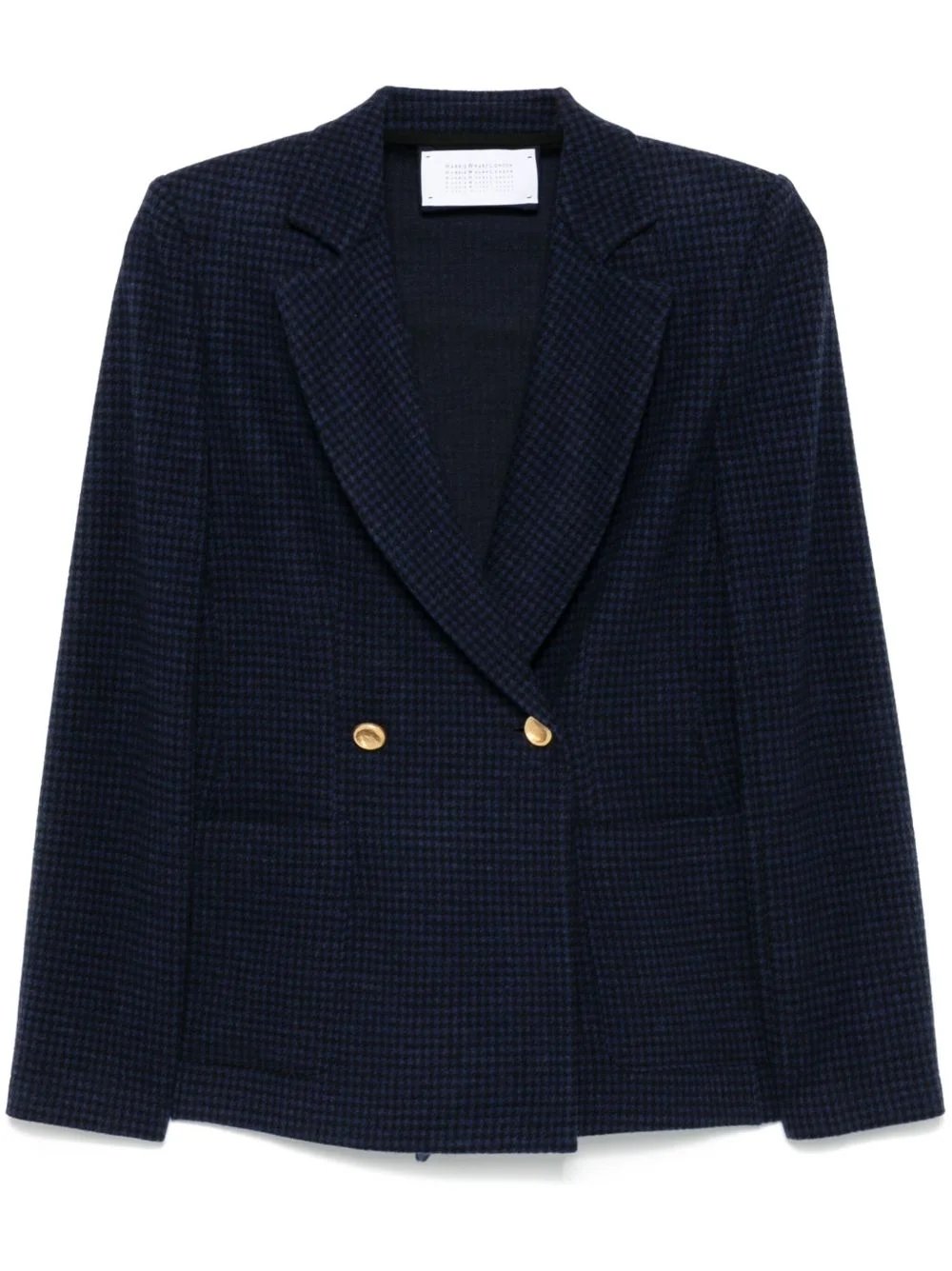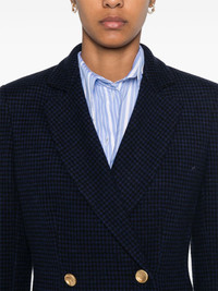 houndstooth-pattern blazer Highlights - Black/blue - Knitted construction - Double-breasted button fastening - Houndstooth pattern - Notched lapels - Shoulder pads - Long sleeves - Dart detailing - Two side patch pockets - Italian rear vents - Straight hem Made in Italy Composition Virgin Wool 47%, Cotton 42%, Polyamide 10%, Elastane 1% SIZE & FIT Model measurements Height 5 ft 10 in(1.77 m) Bust/Chest 33.07 in(84 cm) Hips 37 in(94 cm) Waist 24.8 in(63 cm) FittingInformation Designed for a slim fit that sits just away from the body offering a close yet comfortable fit The internal shoulder pads offer a structured shape Made from a midweight stretch fabric, this piece offers elasticity and flexibility when worn