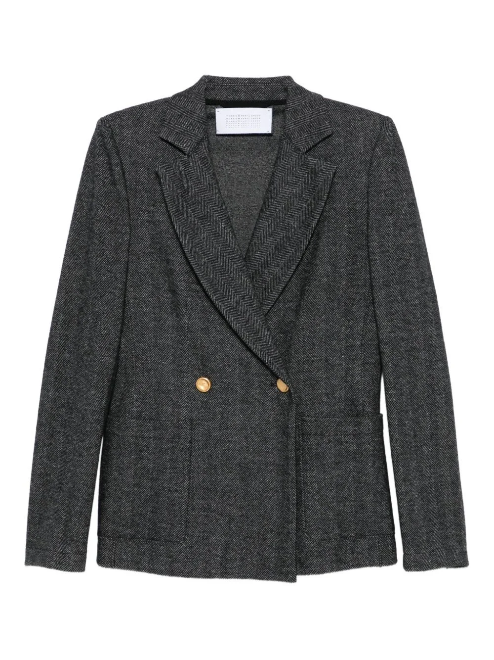 double-breasted blazer Highlights - Grey - Herringbone pattern - Double-breasted fastening - Gold-tone buttons - Notched lapels Made in Italy Composition Virgin Wool 47%, Cotton 42%, Polyamide 10%, Elastane 1% SIZE & FIT Model measurements Height 5 ft 10 in(1.77 m) Bust/Chest 33.07 in(84 cm) Hips 37 in(94 cm) Waist 24.8 in(63 cm) Washing instructions Dry Clean Only