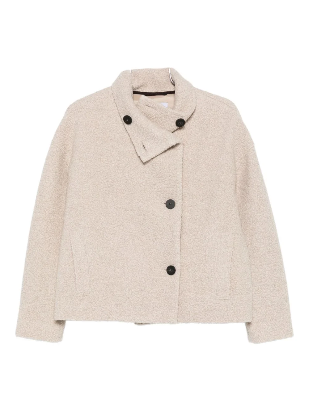 long-sleeve buttoned jacket Highlights - Neutrals - Textured finish - Button fastening - Long sleeves Imported Composition Outer: Wool 62%, Polyamide 23%, Polyester 10%, Other fibres 5% Polyester 95%, Elastane 5% SIZE & FIT Model measurements Height 5 ft 11 in(1.8 m) Bust/Chest 31.49 in(80 cm) Hips 36.61 in(93 cm) Waist 24.4 in(62 cm) Washing instructions Read Manufacturer Guidelines