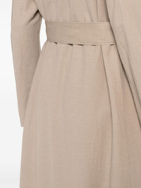 notched-lapel belted trench coat Highlights - Sand beige - Notched lapels - Long sleeves - Belted waist - Two side welt pockets - Full lining - Straight hem Made in Italy Composition Viscose 57%, Polyamide 43% SIZE & FIT Model measurements Height 5 ft 9 in(1.76 m) Bust/Chest 31.88 in(81 cm) Hips 35.43 in(90 cm) Waist 24.8 in(63 cm) FittingInformation Designed to be unstructured, offering a loose fit throughout The tie fastening gives an adaptable and personalised fit Made from a midweight non-stretch fabric This piece fits true to size – take your usual size Washing instructions Dry Clean Only