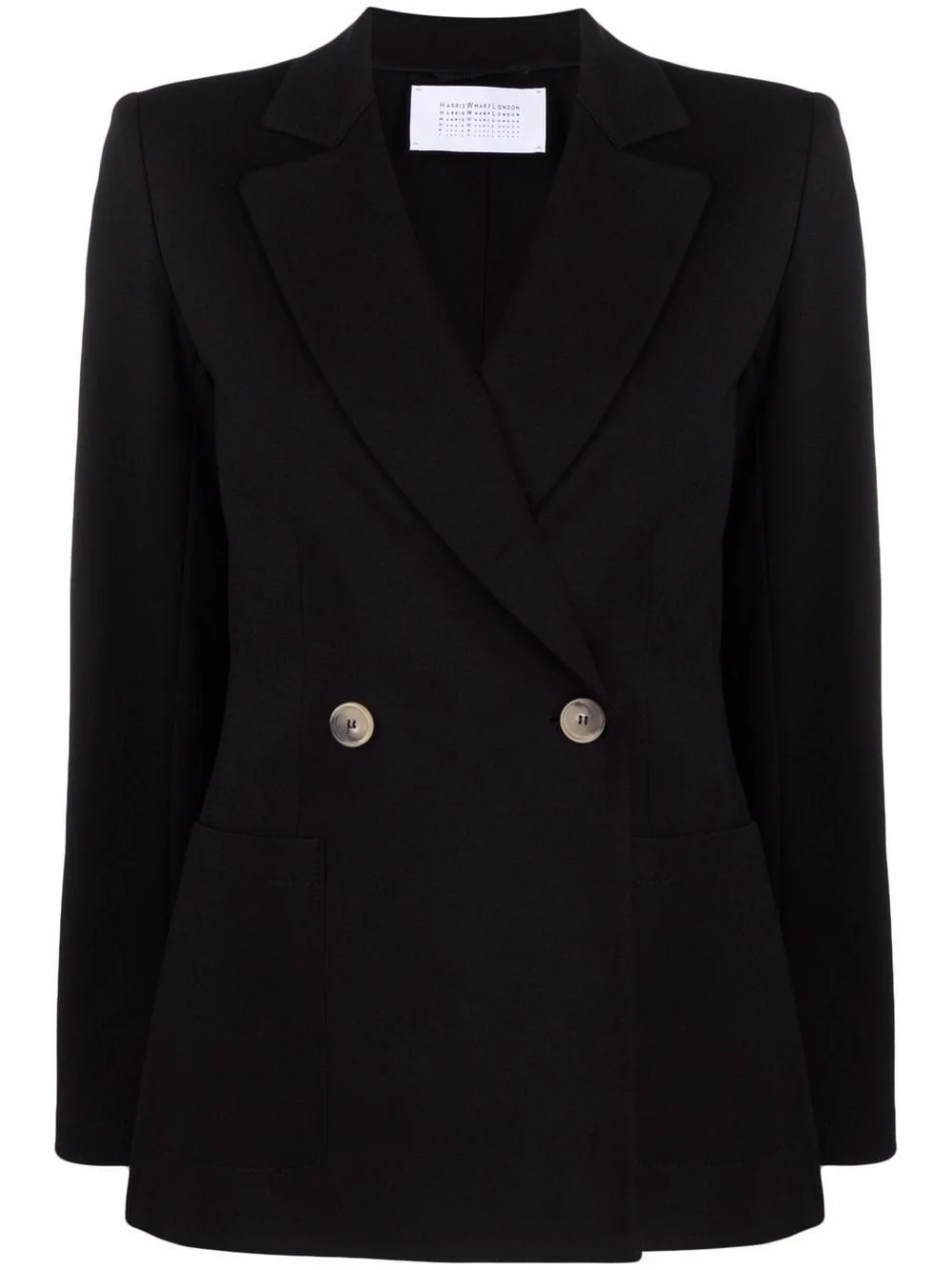 notched-lapel double-breasted jacket Harris Wharf London highlights the brand's origins in outerwear and signature sophisticated design style in this jacket from the SS22 collection. Constructed using tailoring techniques, the garment features notched lapels and a double-breasted silhouette. Highlights - Black - Notched lapels - Long sleeves - Front button fastening - Two front patch pockets Made in Italy Composition Viscose 56%, Polyamide 36%, Spandex/Elastane 8% SIZE & FIT Model measurements Height 5 ft 10 in(1.79 m) Bust/Chest 30.31 in(77 cm) Hips 33.85 in(86 cm) Waist 25.59 in(65 cm) FittingInformation This piece fits true to size. We recommend you get your regular size Cut for a slim fit Made with a mid-weight non-stretch fabric