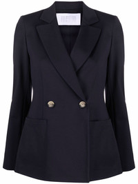 notched-lapel double-breasted jacket Harris Wharf London highlights the brand's origins in outerwear and signature sophisticated design style in this jacket from the SS22 collection. Constructed using tailoring techniques, the garment features notched lapels and a double-breasted silhouette. Highlights - Navy blue - Notched lapels - Long sleeves - Front button fastening - Two front patch pockets Made in Italy Composition Viscose 56%, Polyamide 36%, Spandex/Elastane 8% SIZE & FIT Model measurements Height 5 ft 10 in(1.78 m) Bust/Chest 31.49 in(80 cm) Hips 37 in(94 cm) Waist 23.62 in(60 cm) FittingInformation This piece fits true to size. We recommend you get your regular size Cut for a slim fit Made with a mid-weight stretch fabric Washing instructions Dry Clean Only