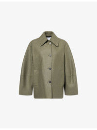 PRODUCT DETAILS - Harris Wharf London wool jacket - 100% virgin wool - Button fastening - Regular fit, collar, long puff sleeves, slip pockets at front, pressed texture - Dry clean only - Made in Italy - True to size - Size UK 8: length 26in / 66cm - Model is 5ft 10in/1.78m and wears a size UK 8 - Midweight, non-stretch Ref: R04539441