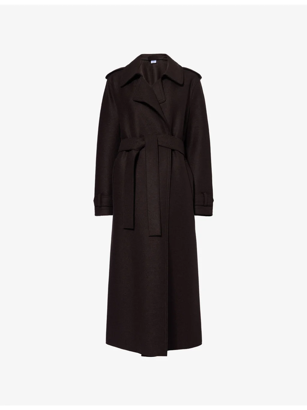 PRODUCT DETAILS - Harris Wharf London wool coat - 100% wool - Self-tie fastening - Regular fit, classic collar, epaulettes, long sleeves, belt loops matching belt, welt pockets at front - Dry clean - Made in Italy - True to size - Size UK 10: length 50in / 127cm - Model is 5ft 10in / 1.78m and wears a size UK 10 - Midweight, non-stretch Ref: R04577080