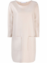 round neck long-sleeved dress Highlights - Rose-pink - Virgin wool - Round neck - Half-length sleeves - Two side patch pockets - Mid-length Made in Italy Composition Virgin Wool 100% SIZE & FIT Model measurements Height 5 ft 10 in(1.78 m) Bust/Chest 31.1 in(79 cm) Hips 33.85 in(86 cm) Waist 24.01 in(61 cm) FittingInformation This piece fits true to size. We recommend you get your regular size Cut for a loose fit Made with a mid-weight non-stretch fabric