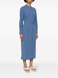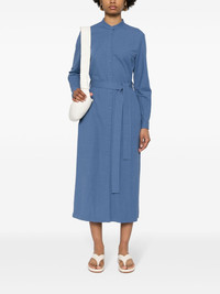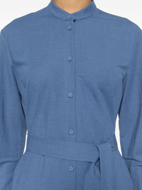 belted shirt midi dress Highlights - Cerulean blue - Band collar - Long sleeves - Buttoned cuffs - Fabric-covered buttons - Pleat detailing to the sleeve - Belt loops - Detachable and adjustable waist tie - Mid-calf length - Straight hem - Front button fastening Made In Italy Composition Viscose 57%, Polyamide 43% SIZE & FIT Model measurements Height 5 ft 10 in(1.78 m) Bust/Chest 32.67 in(83 cm) Hips 35.43 in(90 cm) Waist 23.22 in(59 cm) FittingInformation Designed to be unstructured, offering a loose fit throughout The adjustable tie waist gives a more adaptable and personalised fit Made from a midweight non-stretch fabric This piece fits true to size – take your usual size