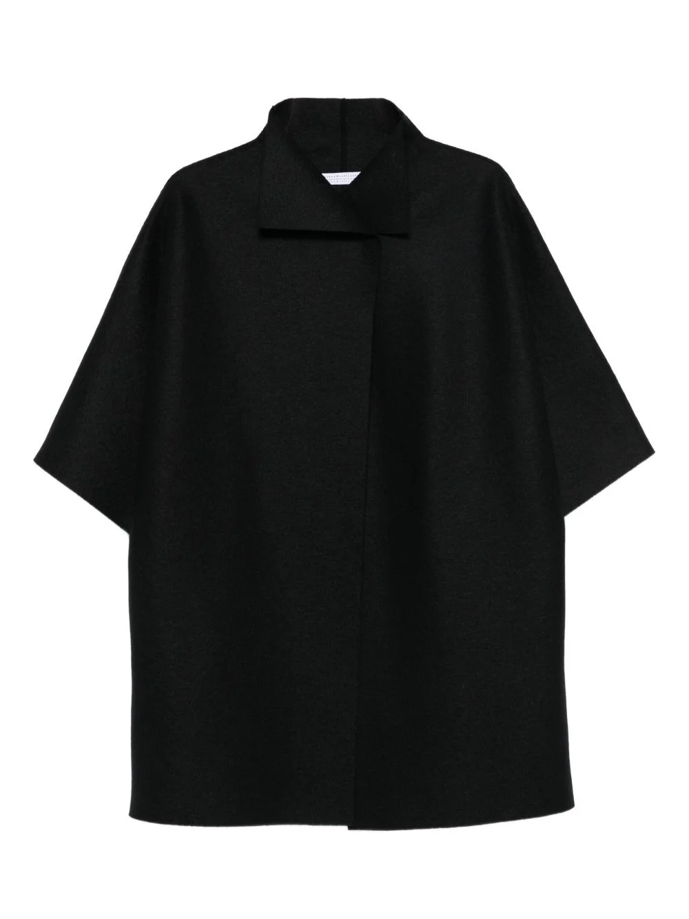 short-sleeve collared coat Highlights - Black - Short sleeves - Collared neckline - Wool fabric - Straight hemline - Open front Imported Composition Wool 100% SIZE & FIT Model measurements Height 5 ft 10 in(1.77 m) Bust/Chest 33.07 in(84 cm) Hips 37 in(94 cm) Waist 24.8 in(63 cm) Washing instructions Dry Clean Only