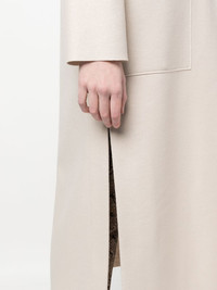 side slit trenchcoat Highlights - Cream white - Virgin wool - Side slits - Notched collar - Front button fastening - Long sleeves - Front patch pocket Made in Italy Composition Virgin Wool 100% SIZE & FIT Model measurements Height 5 ft 8 in(1.73 m) Bust/Chest 33.07 in(84 cm) Hips 35.03 in(89 cm) Waist 24.8 in(63 cm) FittingInformation This piece fits true to size. We recommend you get your regular size Cut for a loose fit Made with a mid-weight non-stretch fabric Washing instructions Dry Clean Only