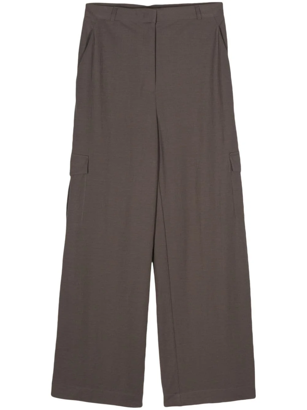 straight-leg cargo trousers Highlights - Cognac brown - Tailored design - Straight leg - Belt loops - Two diagonal pockets to the sides - Two side cargo pockets - Concealed front button, hook and zip fastening Made in Italy Composition Viscose 57%, Polyamide 43%