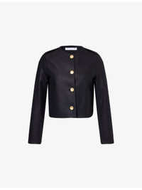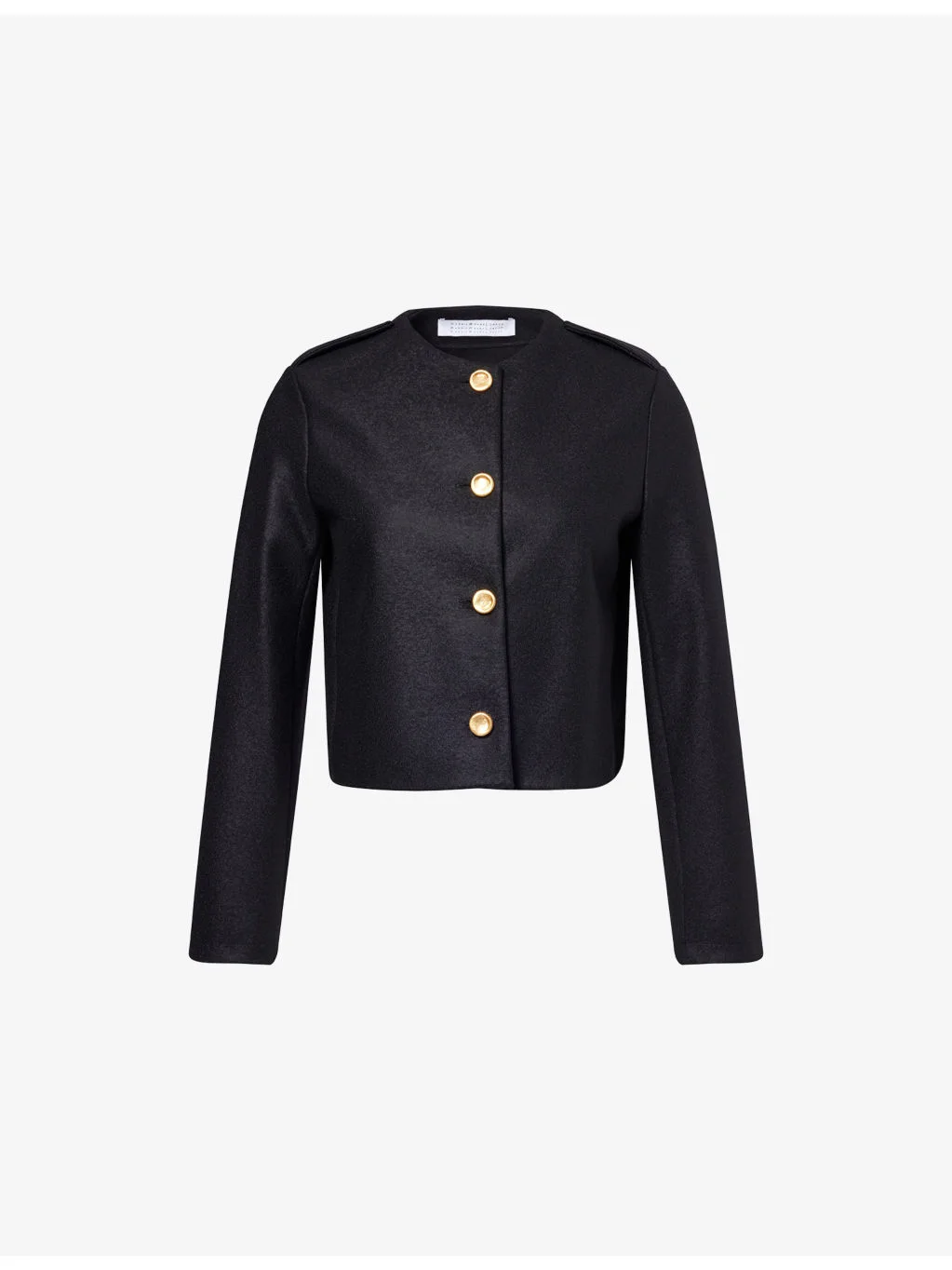 PRODUCT DETAILS - Harris Wharf London wool jacket - 100% virgin wool - Button fastening - Regular fit, round neck, long sleeves, pressed wool texture, polished buttons, cropped length - Dry clean - Made in Italy - True to size - Size UK 8: length 18.5in / 47cm - Model is 5ft 10in/1.78m and wears a size UK 8 - Lightweight, non-stretch Ref: R04539442