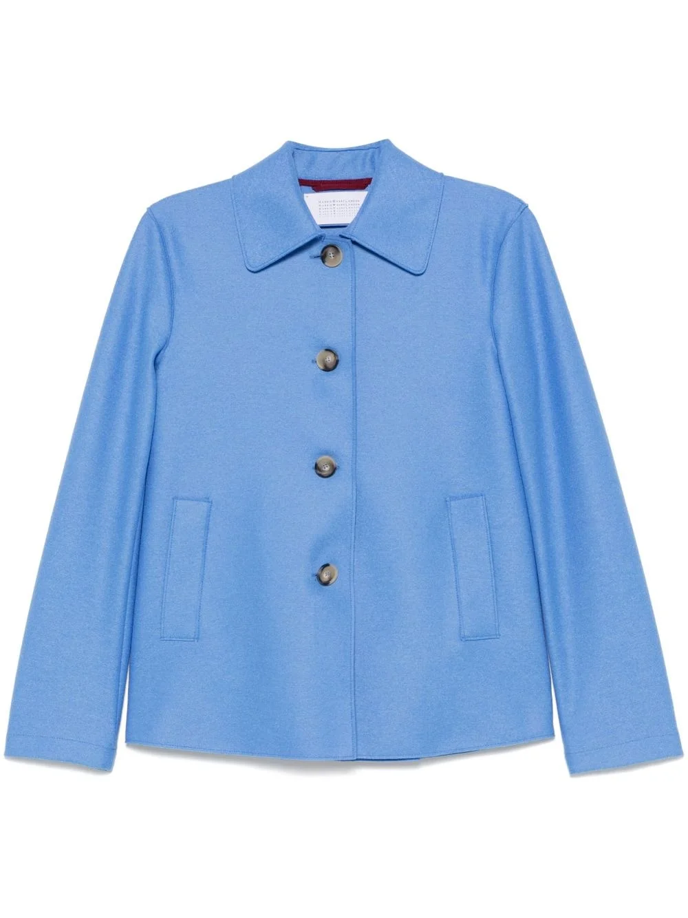 virgin-wool jacket Highlights - Azure - Front button fastening - Two side welt pockets - Inverted pleat - Long sleeves Made in Italy Composition Virgin Wool 100% SIZE & FIT Model measurements Height 5 ft 10 in(1.77 m) Bust/Chest 31.88 in(81 cm) Hips 36.22 in(92 cm) Waist 24.01 in(61 cm) FittingInformation Designed to be unstructured, offering a loose fit throughout Made from a midweight non-stretch fabric, this piece offers minimal elasticity when worn