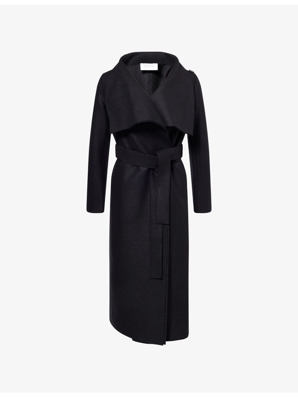 PRODUCT DETAILS - Harris Wharf London wool coat - 100% virgin wool - Self-tie fastening - Regular fit, shawl collar, long sleeves, pockets at front, self-tie at waist, longline length - Dry clean - True to size - Size UK 8: length 46in / 117cm - Model is 5ft 10in/1.78m and wears a size UK 8 - Midweight, non-stretch Ref: R04539431