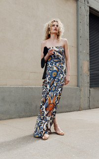 Each Heirlome piece is crafted through the lens of timeless artisanal practices, naturally resulting in impeccable tailoring and exquisite details. PRODUCT DETAILS - Pre-Fall '25 - Zip fastening - Composition: 100% silk - Designer color: Blue/ Ochre - Dry clean - Imported SIZE & FIT - Our model is wearing a size US 2 - Model is 5'10" with a 30" bust, 24" waist, and 34" hip - Designed for a slim fit