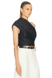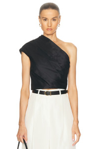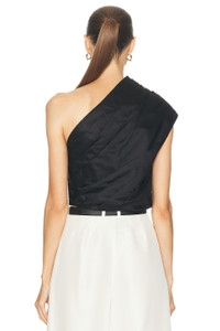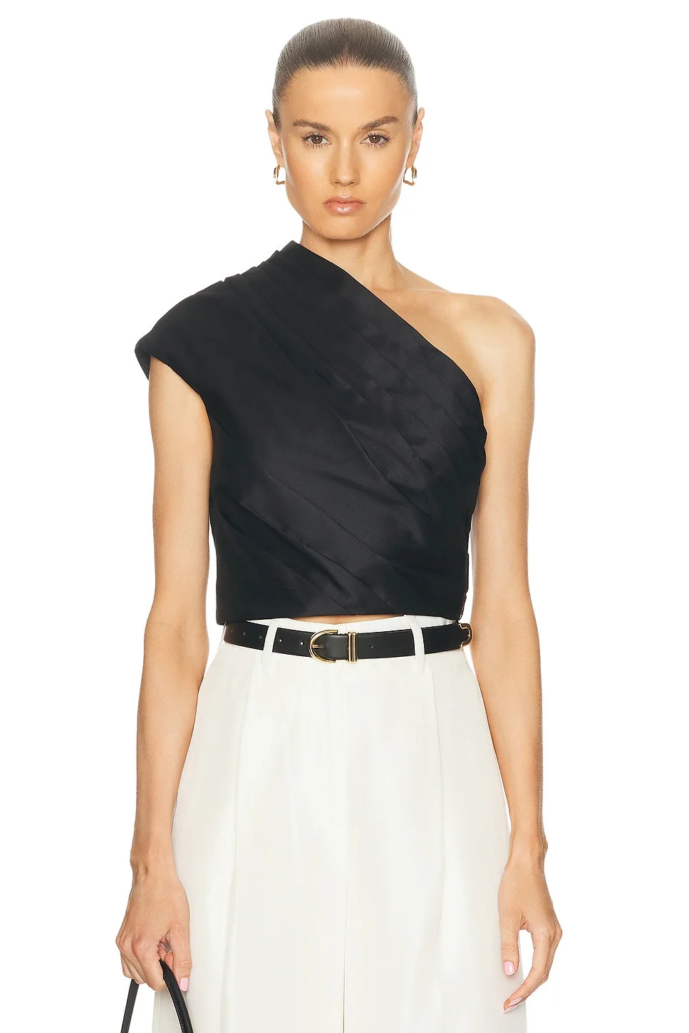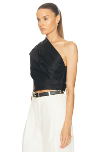 Details - 100% silk - Made in USA - Dry clean only - Side zipper closure - Pleated one-shoulder styling - Boned bodice - Silk shantung fabric - Our Style No. HIRF-WS5 - Manufacturer Style No. HL-IV-0523