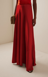 Each Heirlome piece is crafted through the lens of timeless artisanal practices, naturally resulting in impeccable tailoring and exquisite details. Bias, floor length skirt in mid-weight silk satin fabric. Clean lines, and dramatic sweep, designed to style both for daytime and evening. PRODUCT DETAILS - Resort '26 - Zip fastening at side - Composition: 100% silk - Dry clean - Imported SIZE & FIT - Our model is wearing a size US 2 - Model is 5'10" with a 30" bust, 24" waist, and 34" hip