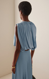 Each Heirlome piece is crafted through the lens of timeless artisanal practices, naturally resulting in impeccable tailoring and exquisite details. Shirred, bubble draped top in silk double georgette fabric. Shirred fabric is attached to lining at hem creating a subtle bubble with a soft drape. Top is fully lined in silk. PRODUCT DETAILS - Resort '26 - Zip fastening along back - Composition: 100% silk - Designer color: Sky - Dry clean - Imported SIZE & FIT - Our model is wearing a size Small - Model is 5'9" with a 32" bust, 24" waist, and 35" hip - Fits true to size, our fit specialist recommends taking your normal size