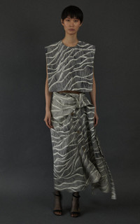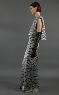 PRODUCT DETAILS - Boxy fit, sleeveless, crew neck - Zipper fastening - Lined - Composition: 100% Silk - Color: black/white - Dry clean only - Fall '25
