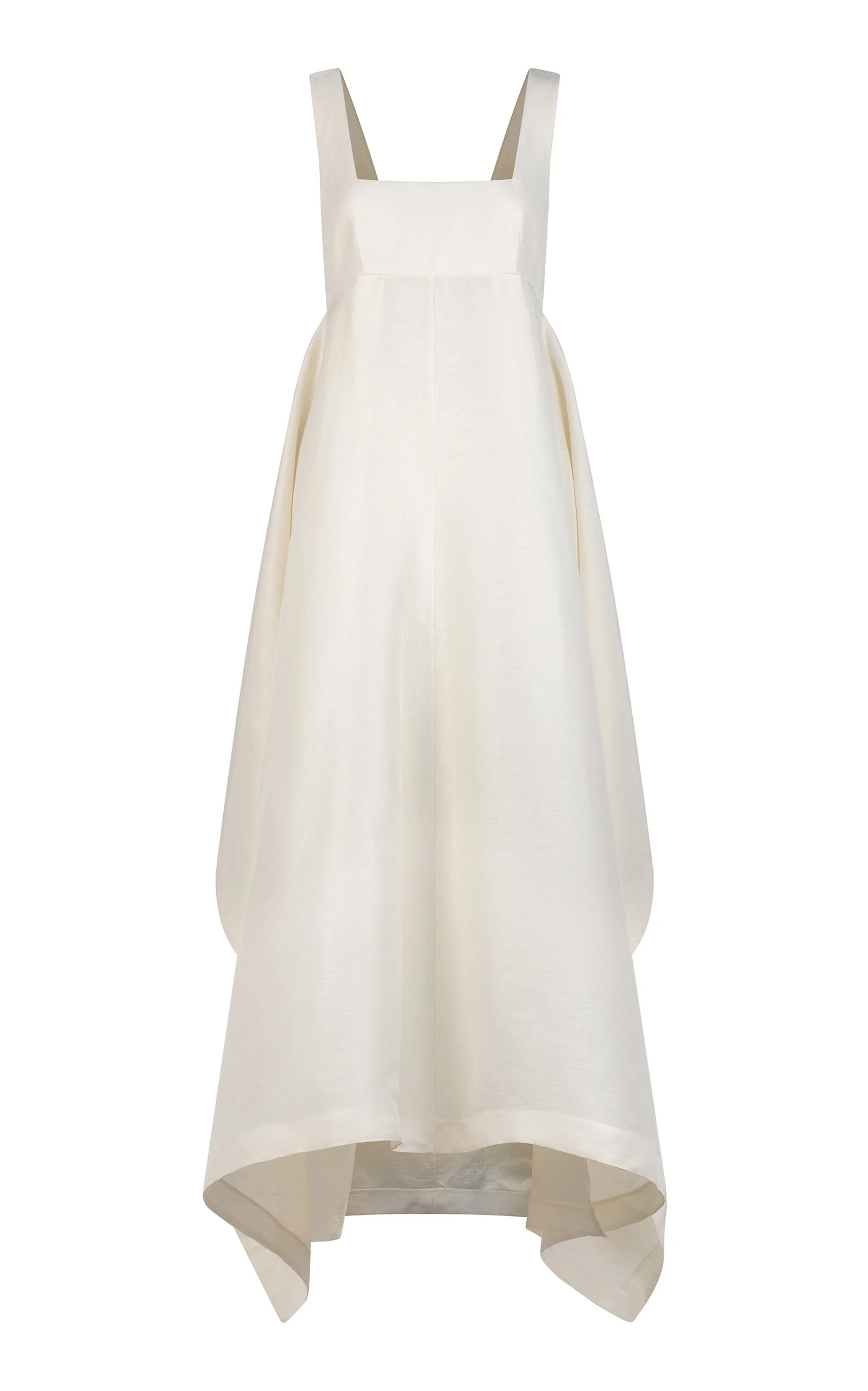 PRODUCT DETAILS - Regular fit, thick straps, backless detail with self-tie through the back, flowy A-line cut maxi dress - Zip Fastening - Lined - Composition: 30% Silk, 70% Linen - Color: ivory - Dry clean only - Pre-Fall '25