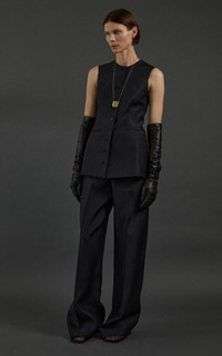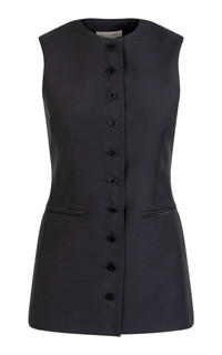PRODUCT DETAILS - Slim fit, sleeveless, crew neck - Button fastening - Lined - Composition: 68% Wool, 32% Silk - Color: ivory - Dry clean only - Fall '25