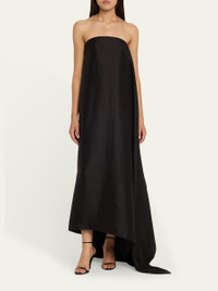 Heirlome "Wren" astymmetric dress featuring a floor sweeping side drape Approx. 54"L from shoulder to hem Strapless neckline Sleeveless Shift silhouette Full length Back zip Silk Imported Online Inquiries: BGS21_BA49Y| Store Inquiries: #5030799