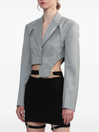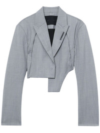 asymmetric virgin-wool blazer Highlights - Light grey - Virgin wool - Melange effect - Asymmetric design - Silver-tone logo plaque - Peak lapels - Concealed front fastening - Shoulder pads - Long sleeves - Cropped - Full lining Imported Composition Virgin Wool 100% Washing instructions Read Manufacturer Guidelines