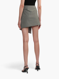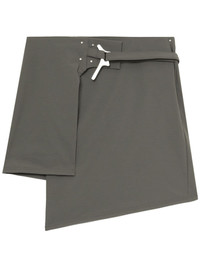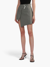 asymmetric wrap skirt Highlights - Olive green - Wrap design - Asymmetric hem - Slide-buckle fastening - Thigh-length Imported Composition Nylon 90%, Spandex/Elastane 10% Washing instructions Dry Clean Only
