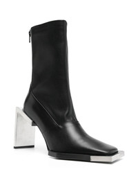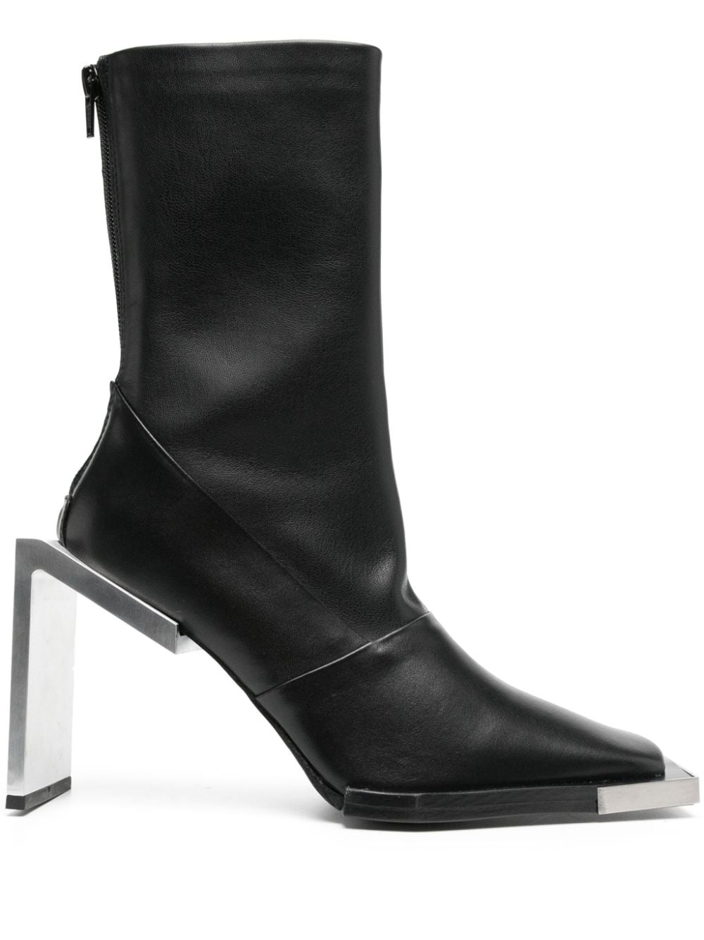 105mm square-toe leather boots Highlights - Black - Calf leather - Silver-tone hardware - Square toe - Rear zip fastening - Branded leather insole - 105mm high heel - Leather sole Imported Composition Lining: Calf Leather 100% Sole: Calf Leather 100% Outer: Calf Leather 100% SIZE & FIT Measurement CIRCUMFERENCE 10.8 in(27.5 cm) HEEL 4.1 in(10.5 cm) HEIGHT 7.5 in(19 cm) Sole height 0.4 in(1 cm)
