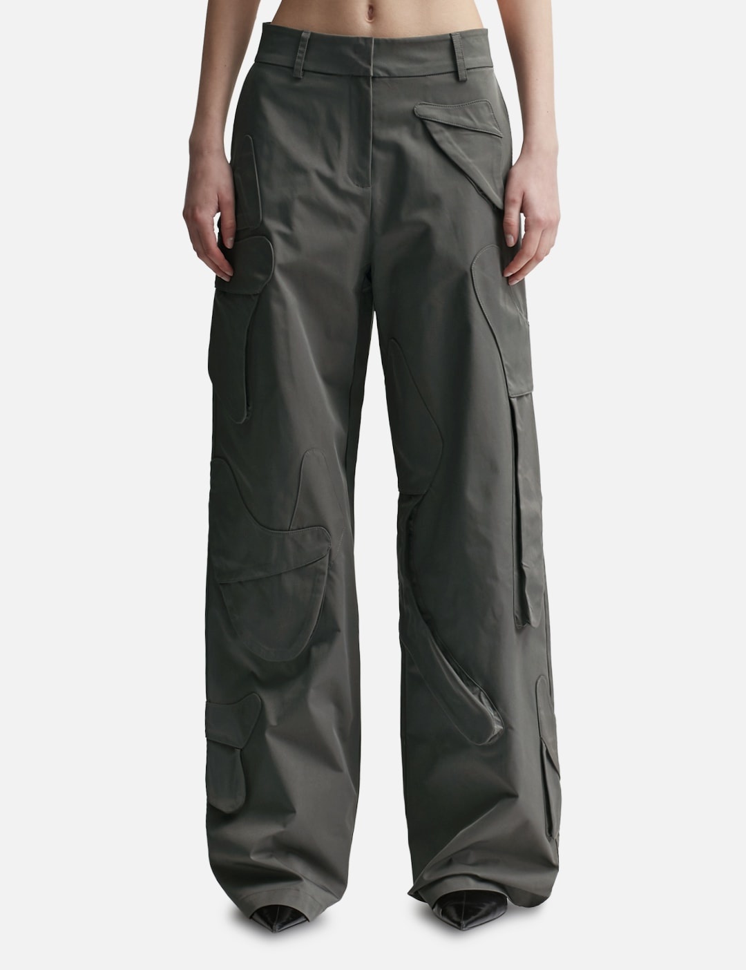 - Heliot Emil - Conflagrant Cargo Pants - Low waist - Oversized, baggy fit - 8 organically shaped pockets - H belt loop detail on rear waist - Color: Dark Gray - Material: 100% Polyester - See more Pants and Clothing