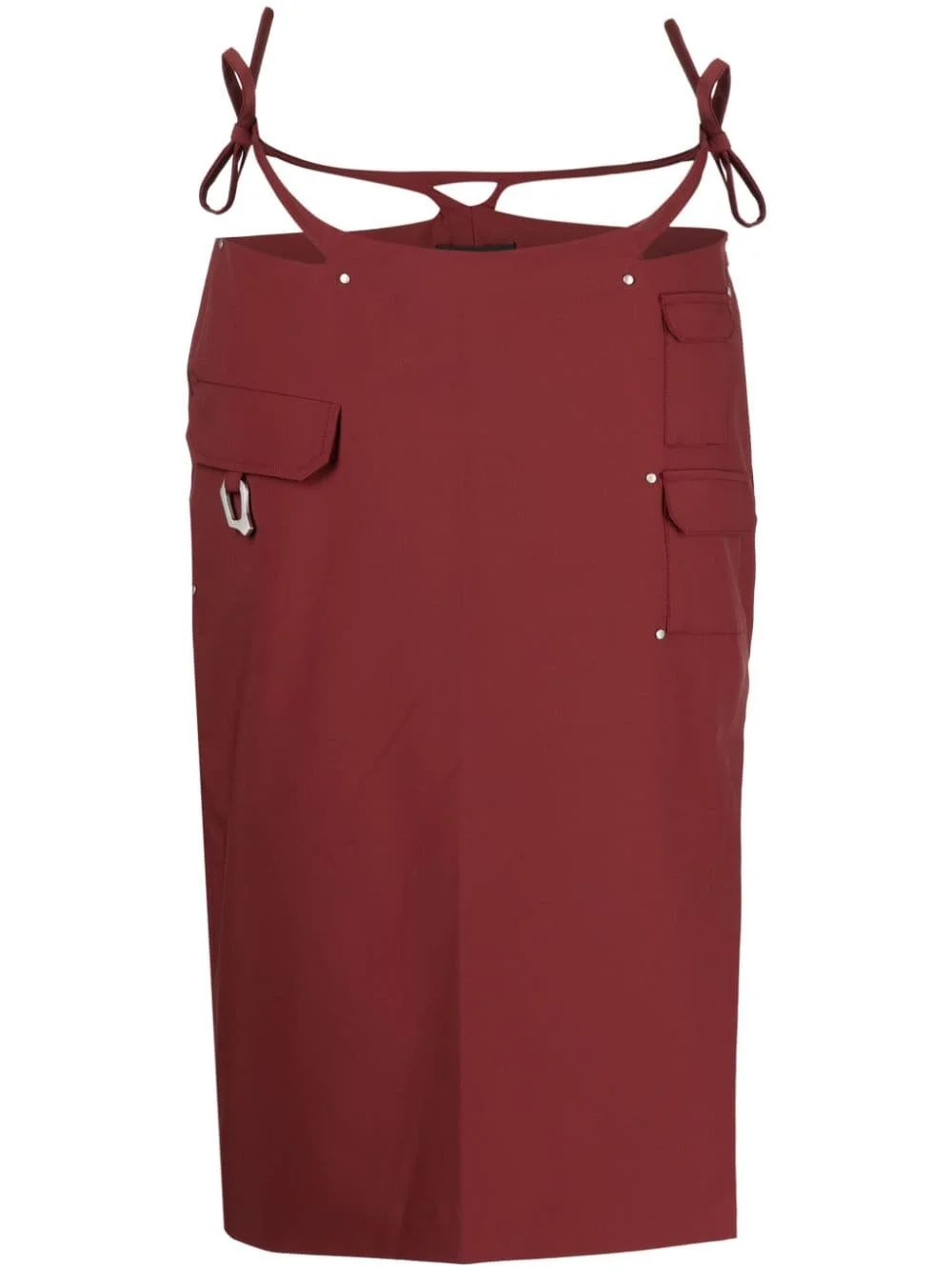 cut-out detailing midi skirt Highlights - Wine red - Stretch-design - Cut-out detailing - Side slit - Side zip fastening - Front flap pockets - Straight hem - Knee-length Imported Composition Nylon 85%, Spandex/Elastane 15% SIZE & FIT Model measurements Height 5 ft 9 in(1.76 m) Bust/Chest 31.1 in(79 cm) Hips 35.03 in(89 cm) Waist 24.4 in(62 cm) FittingInformation This midi-length skirt is intended to be worn low on the hips Made from a midweight stretch fabric, this piece offers elasticity and flexibility when worn This piece fits true to size – take your usual size Washing instructions Machine Wash