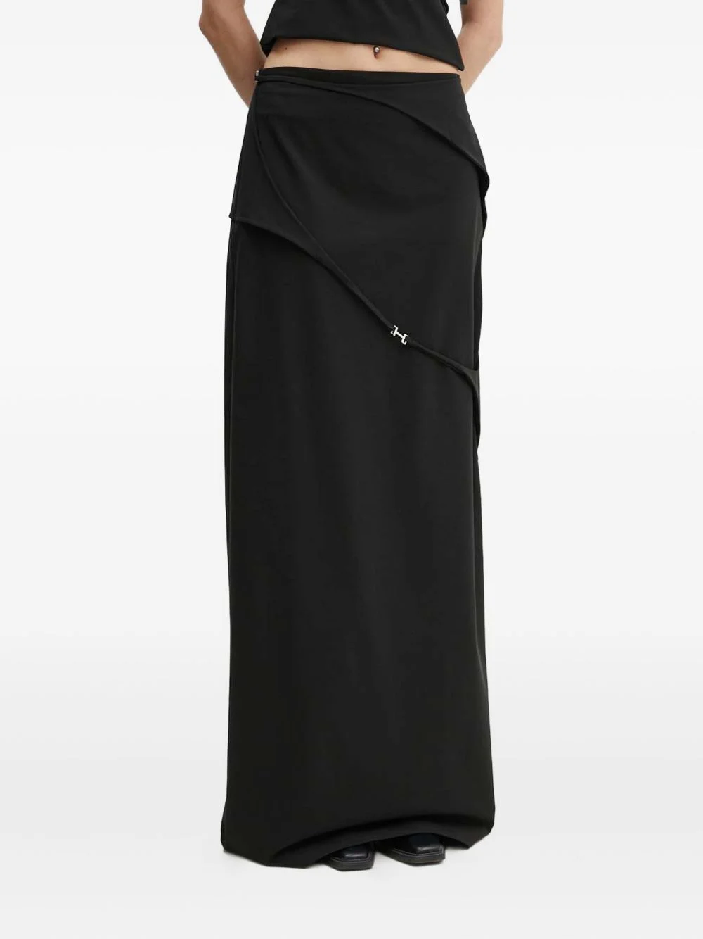 rear-slit maxi skirt Highlights - Black - Strap detail - Metal hardware - Back slit - Maxi length Imported Composition Nylon 90%, Elastane 10% Washing instructions Read Manufacturer Guidelines