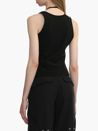 strap-detail draped top Highlights - Black - Stretch-design - Round neck - Strap detailing - Self-tie fastening - Sleeveless - Straight hem Imported Composition Nylon 90%, Spandex/Elastane 10%