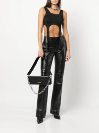 U-neck cropped tank top black U-neck wide shoulder straps cropped asymmetric hem Imported Composition Polyester 92%, Spandex/Elastane 8% SIZE & FIT Model measurements Height 5 ft 10 in(1.77 m) Bust/Chest 29.92 in(76 cm) Hips 35.03 in(89 cm) Waist 24.01 in(61 cm) Washing instructions Machine Wash
