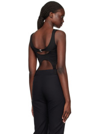 Lightweight stretch polyester jersey tank top. · Layered construction · Scoop neck · Logo printed at front · Cropped hem · Extended trim at front and back hem · Low back · Harness-style overlay · G-hook fastening at back overlay Supplier color: Black