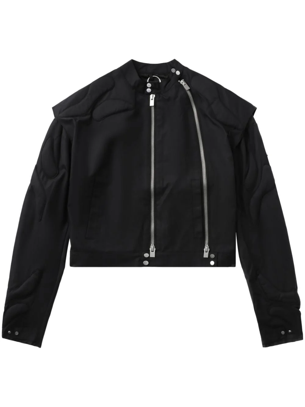 zip-detail bomber jacket Highlights - Black - Front zip fastening - Decorative zip detailing - Band collar - Drop shoulder - Long sleeves - Press-stud fastening cuffs - Straight hem - Cropped Imported Composition Nylon 100% Washing instructions Read Manufacturer Guidelines